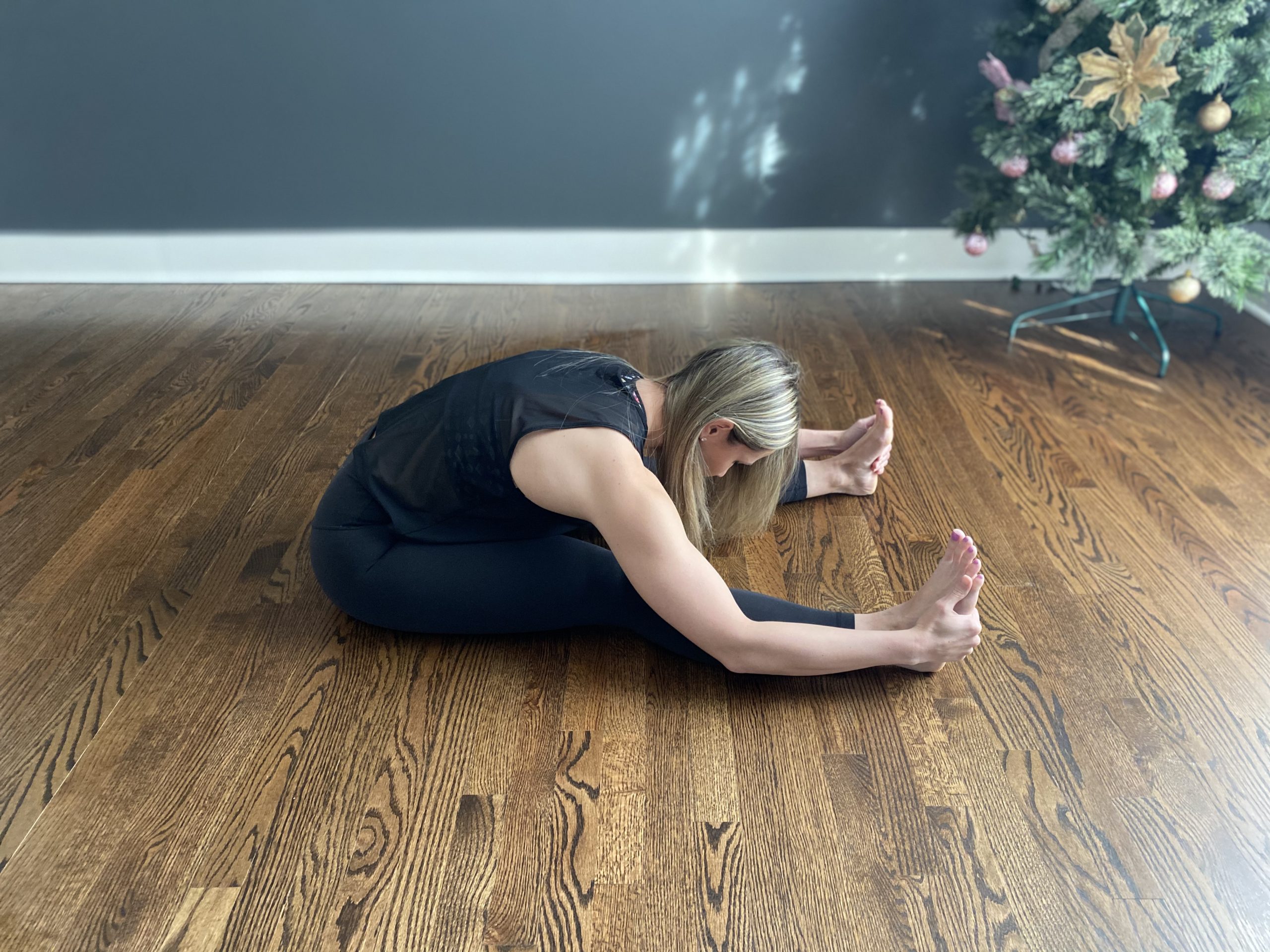 - Bring your big toes together, open your knees wide/Walk your fingertips forwards