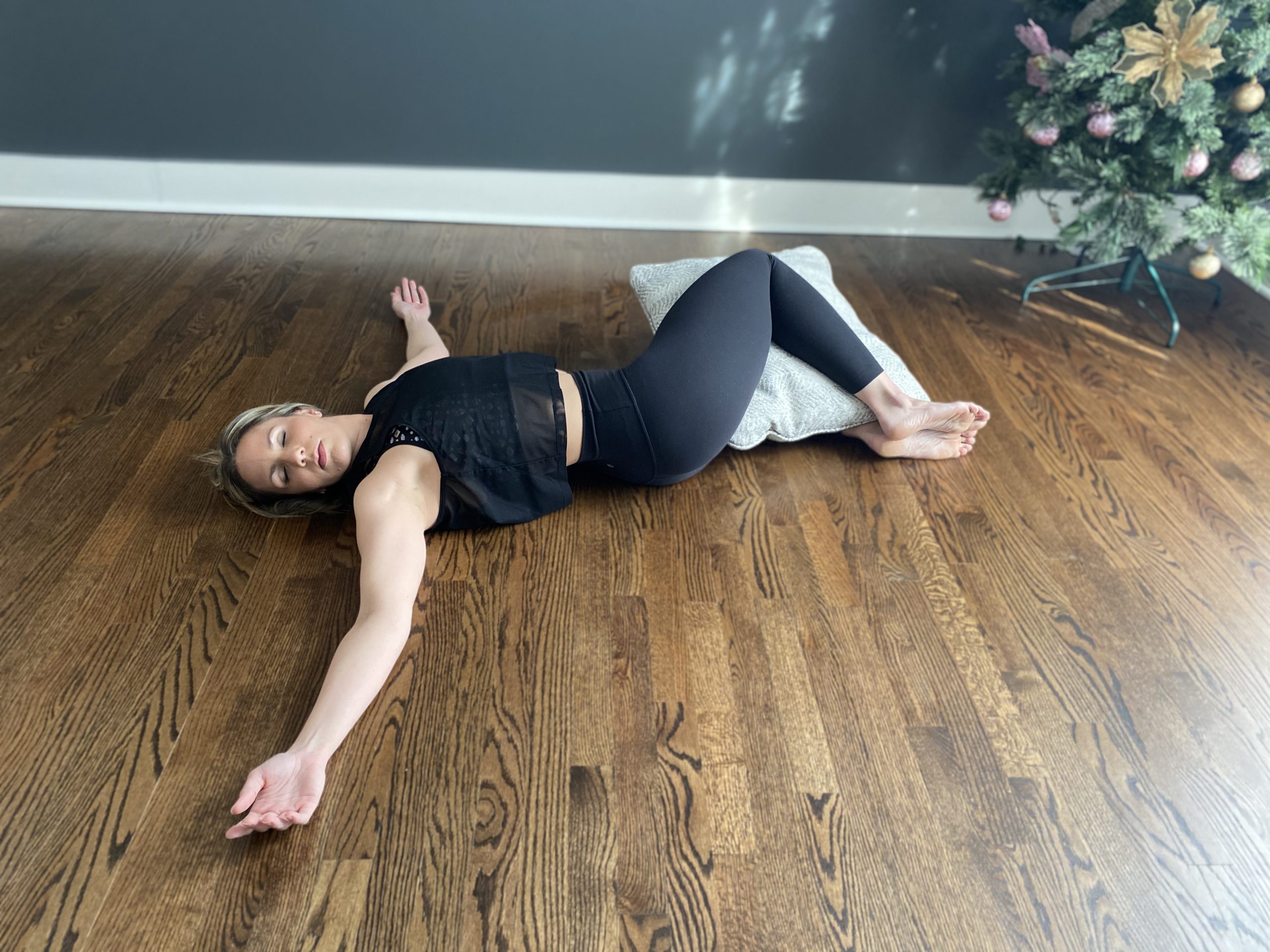- Place a pillow between your knees/Keep both shoulders grounded in to the earth