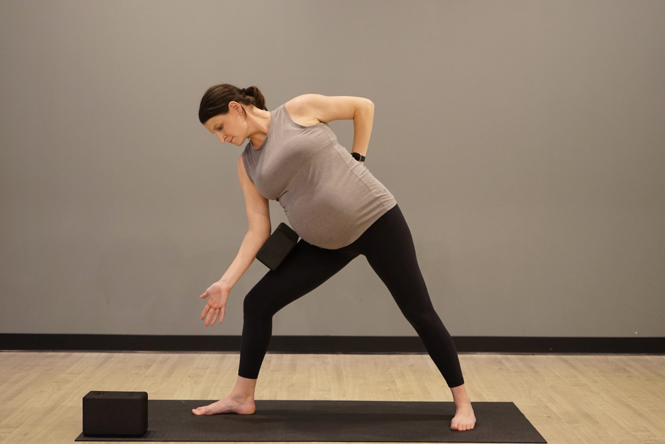 - As your pregnancy progresses, take your feet wider apart as you journey to the top of your mat. Have your blocks waiting for you at the top of the mat to use in any upcoming transitions like halfway lift. You may also choose to have the blocks already under your hands in downward facing dog. Remember there are multiple heights to the blocks, so find what is comfortable for you.