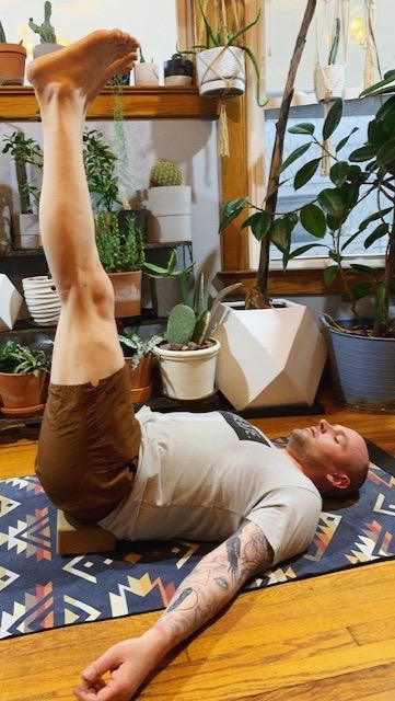 How to do it: Place a block or a pillow or a blanket directly beneath your sacrum. (Everybody is different here, so find what placement works best for you!) Rest your shoulders and upper back on your mat and extend your legs up an imaginary wall. Release engagement in your legs and simply allow gravity to do the work.