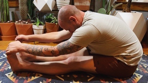 How to do it: Stretch your legs out long in front of you. Inhale, reach your arms overhead. Exhale, bend forward at your hips. Allow your hands to rest somewhere on your legs (doesn’t have to be your feet!) Maintain length in your side bodies, so imagine you’re pressing your heart toward your big toes.